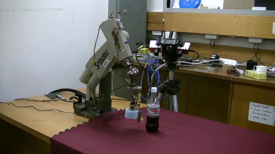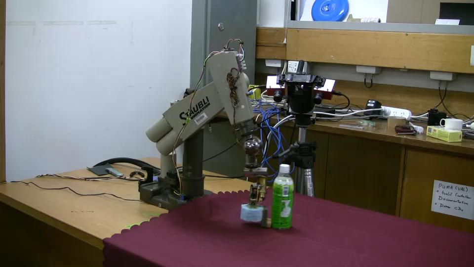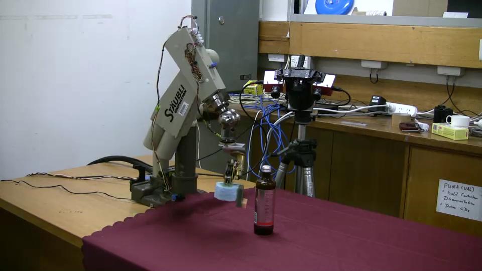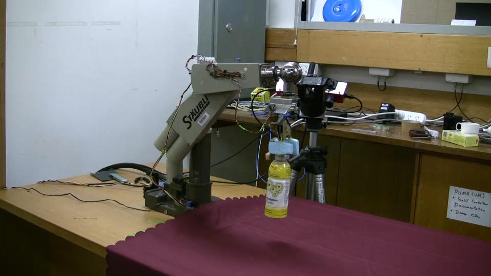 The following table contains HDV camcorder videos of our robot performing autonomous object learning on seven test objects. The names of the test objects are the same as those used in the paper. The long pause after the nudge in the object learning videos is due to the saving of data to document the experiment. This includes the saving of several hundred tracking images collected during the robotic nudge, which takes a considerable amount of time.