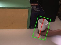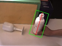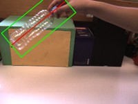 IROS 2006 VideosReal Time Object Tracking using Reflectional Symmetry and MotionPaper by Wai Ho Li and Lindsay KleemanThe following videos show tracking experiments where moving objects being tracked via their symmetry lines. In essence, the system tracks an object via its symmetry line and motion. A kalman filter is used to estimate the paramters of the symmetry line. The system does not use any a priori object models. The system can track transparent objects. It is robust against partial occlusions and will function under a variety of illumination conditions. A paper titled "Real Time Object Tracking using Reflectional Symmetry and Motion", authored by Wai Ho Li and Lindsay Kleeman, detailing this symmetry-based tracking system has been accepted into the IEEE/RSJ International Conference on Intelligent Robots and Systems 2006 (IROS 2006 Beijing).The video numbers are the same as those used in the IROS 2006 paper. The green rectangle is a rotated bounding box of an object's motion blocks. The symmetry line being tracked is shown in red. The bounding box may appear unstable or overly large. This does not mean the tracker has diverged, as the symmetry line, in red, is still being tracked successfully by the Kalman filter. These temporal jitters in the size and location of the bounding box are due to the fact that it is generated anew for every frame and its parameters are not tracked using the Kalman filter. Where appropriate, videos showing the symmetry line only are also provided, to improve the clarity of the tracking result. The tracking results are provided as WMV and H.264 videos. The x264 codec was used to encode the H.264 videos, which are of a higher quality than the WMV videos. VLC is an open source and cross platform player that can decode H.264 videos. If you wish to install a standalone H.264 decoder, FFDShow is an open source option. <-- See other IRRC Videos <-- Return to IRRC Index