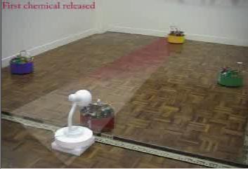 that resulted from projecting chemical plume in different directions. With the drop in chemical concentration when the robot leader was moved to another place the